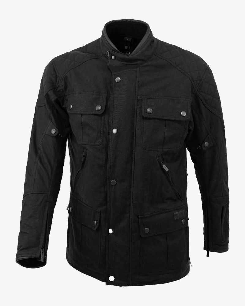Fabricada en algodón encerado de alta resistencia, combina una estética clásica con la tecnología que exige el motero actual. Incorpora membrana impermeable HIPORA, que te protege de la lluvia y el viento sin sacrificar transpirabilidad, y un forro térmico desmontable que se adapta a cualquier época del año.